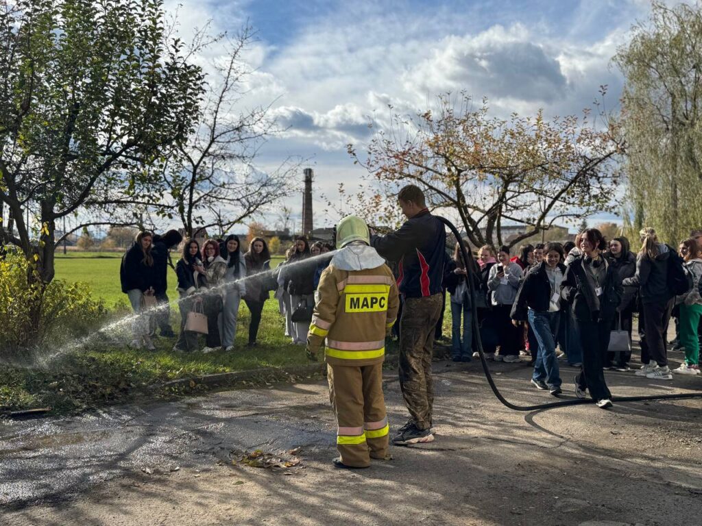 Учні повторили правила користування вогнегасниками та спробували себе у ролі рятувальника, а працівники МАРС продемонстрували як правильно локалізувати осередок пожежі та надали корисні поради щодо безпечної поведінки в побуті.