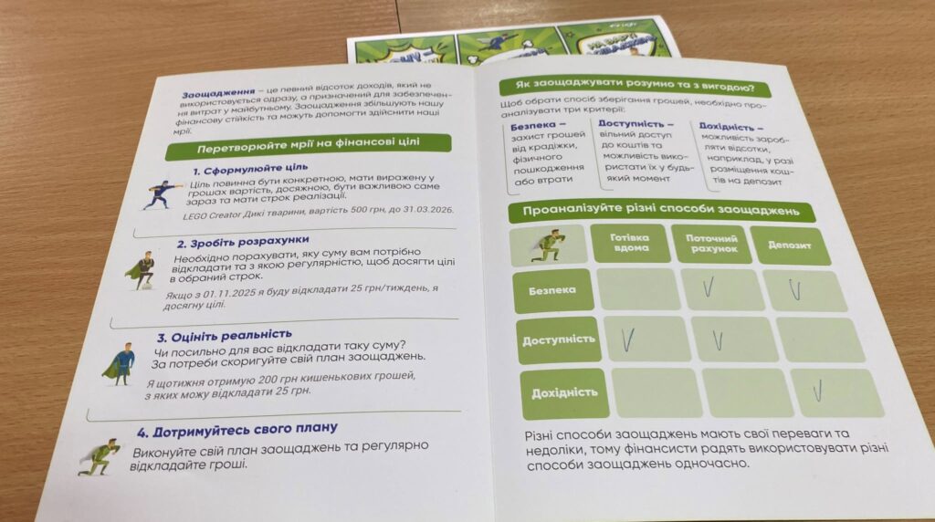 •  виконували практичні вправи «Як перетворити мрії на фінансові цілі» та «Як заощаджувати розумно та з вигодою»;