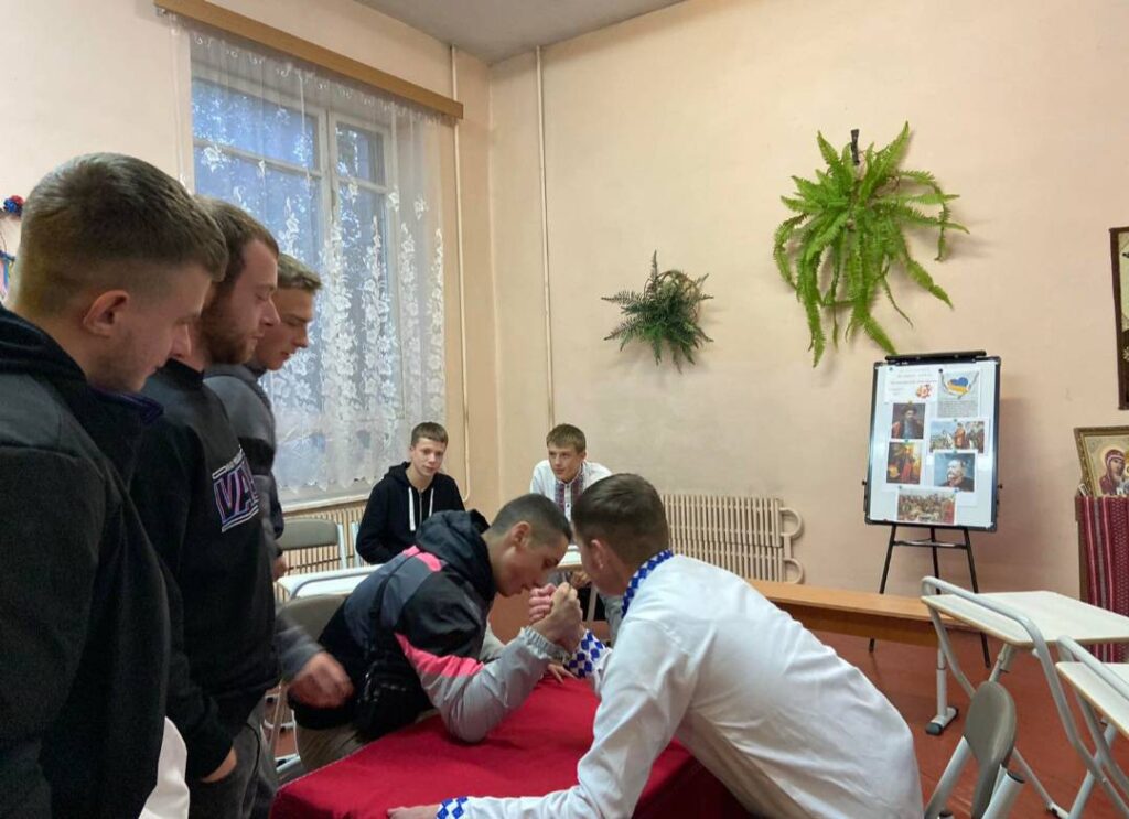 14 жовтня в гуртожитку ВПУ №21 вихователька Ольга Рассуждай провела з учнями козацькі забави “Козацькому роду нема переводу”.